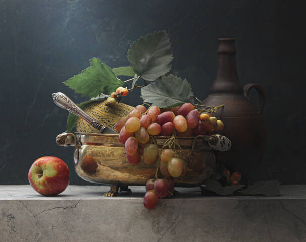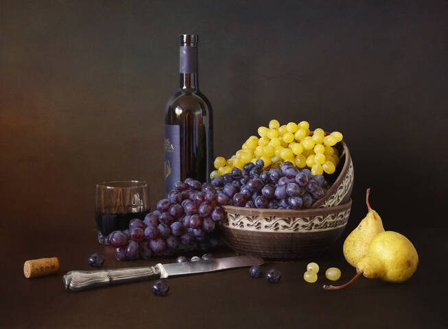 От натюрморта в восхищении я , но только жаль ,что рюмка тут одна , обидно ,что Вы Алевтина в одиночку пьете и виноград покушать в гости не зовете )))