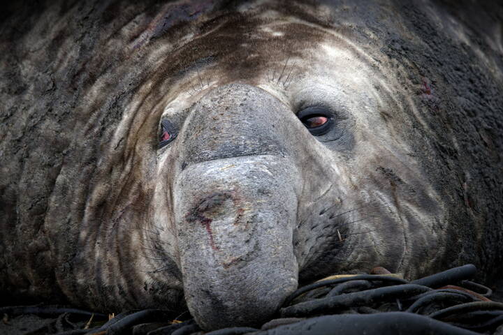 Какая прелесть, мир иной, мир наш! Обычно на снимках их глаза чёрные, здесь же он смотрит в сторону и это позволило увидеть "белки". Цвет их, говорят, определяется значительным количество кислорода в крови, обеспечивающим возможность долго находится под водой.