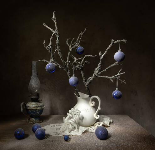 Нравится! Красота!Но вот с шарами внизу перебор, достаточно бы два шара, слева, они вместе. Как доминанта работы!Тут все-таки, главные, Те, что на ветке! Изморозь, душевная.