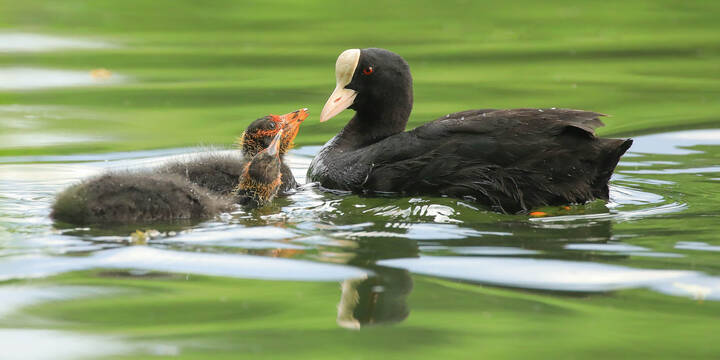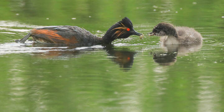 @Людмил@, Черношейные поганки совсем маленькие по сравнению с большими поганками (за семейной жизнью которых я пристально наблюдала прошлым летом), но очень похожи на них поведенчески.