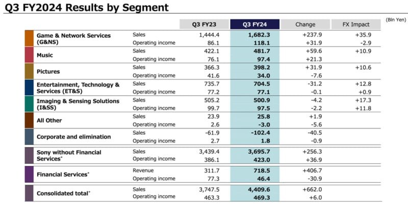 В третьем квартале FY2024 продажи кинокамер и цифровых фотокамер Sony сократились сравнивая с аналогичным периодом 2023 года. В частности, сегмент развлечений и технологий Sony показал снижение операционной прибыли на 100 миллионов йен, что составляет около $660,000.