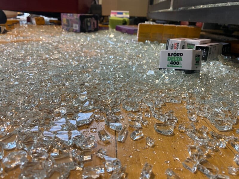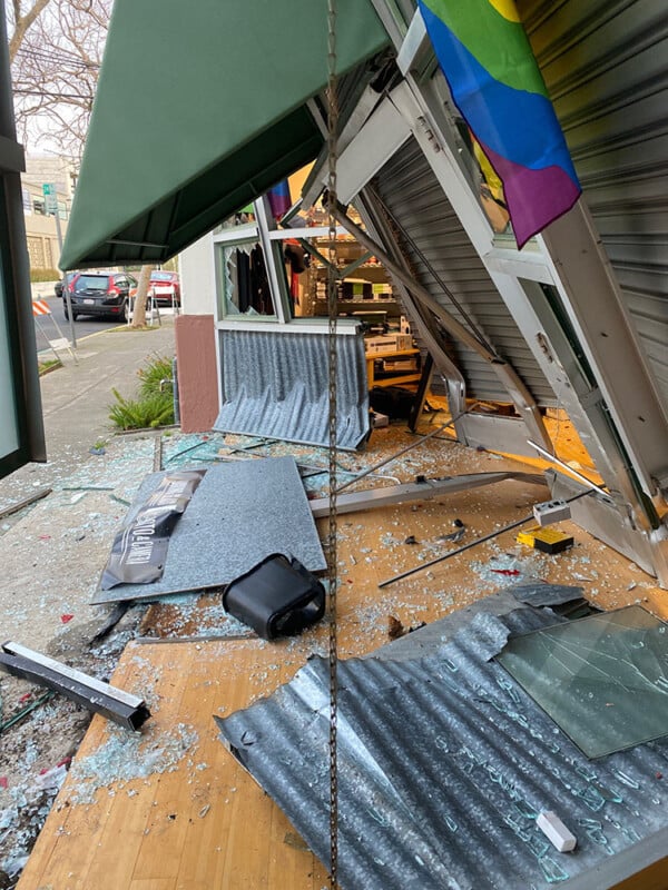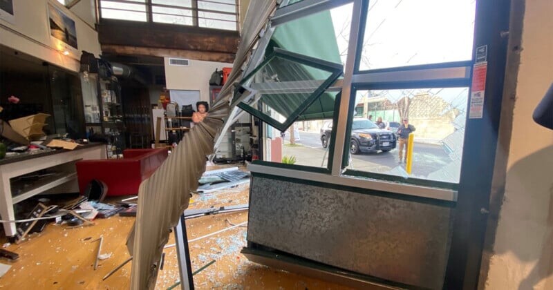 Магазин камер Looking Glass Photo в Беркли пострадал от серьезного повреждения после того, как грабители врезались в его двери. По словам владельца магазина, Джен Уайкукауски, ущерб составил не менее 50 000 долларов, включая украденные товары.