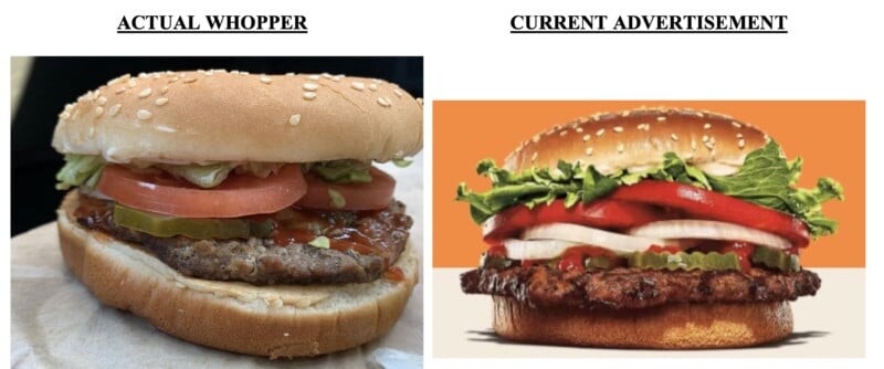В рекламе Burger King было признано, что их фотографы «стилизуются более красиво», чем это сделает работник ресторана. Однако сеть утверждает, что «разумные потребители понимают, что цель фотографий меню — сделать блюда как можно более аппетитными», и попросила суд отклонить иск.