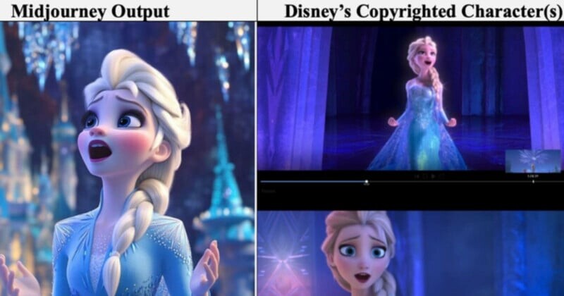 В иске Disney и Universal содержится указание на AI-сгенерированные изображения, которые, по их словам, существенно схожи с их охраняемыми произведениями. Примеры включают персонажей из Star Wars, Frozen, The Simpsons и Despicable Me, а также таких, как Базз Лайтер, Железный Человек, Барт Симпсон и Йода. Студии утверждают, что эти результаты являются плодом преднамеренной стратегии Midjourney по получению прибыли от их произведений.