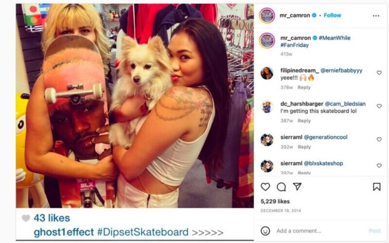 В 2003 году фотограф Джамилла Роза Кохран запечатлела Рэпера Cam’ron в эффектном розовом пальто и с цветным телефоном на модном показе Mercedes-Benz в Нью-Йорке. Это изображение стало не только мемом в интернете, но и важным элементом культуры хип-хопа.