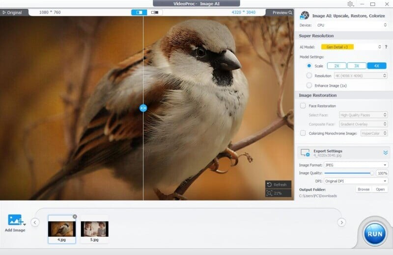 VideoProc Converter AI предлагает множество обновлений функций на протяжении всего года, чтобы решить эти проблемы с выходом на новый уровень. Он помогает исправить шумы, повысить резкость, улучшить фотографии с низким разрешением и восстановить тонкие текстуры, которые не смогли поймать камеры.