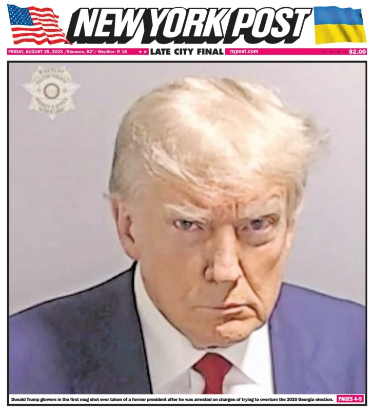 Трамп сделал своё mug shot в тюрьме графства Фултон в Атланте, Джорджия, после предъявления ему 12 обвинений, связанных с вмешательством в выборы. Этот случай привлек значительное внимание, включая арест таких лиц, как бывший мэр Нью-Йорка Руди Джулиани и бывший адвокат Трампа Дженна Эллис.