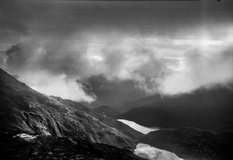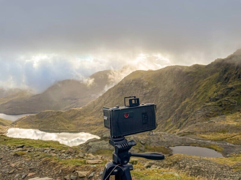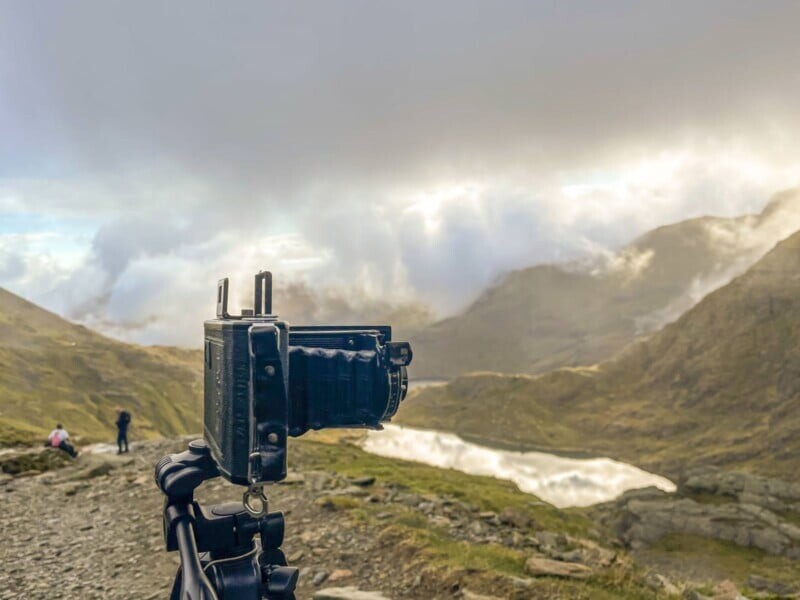 На горе, среди низких облаков, автор остановился, чтобы заснять две ледниковые озера. Каждое нажатие на затвор ощущалось как нечто церемониальное. В это время мимо проходила семья с маленьким мальчиком, который был заинтригован старинной камерой. Этот момент, когда четыре поколения объединились благодаря этой машине, оставил след.