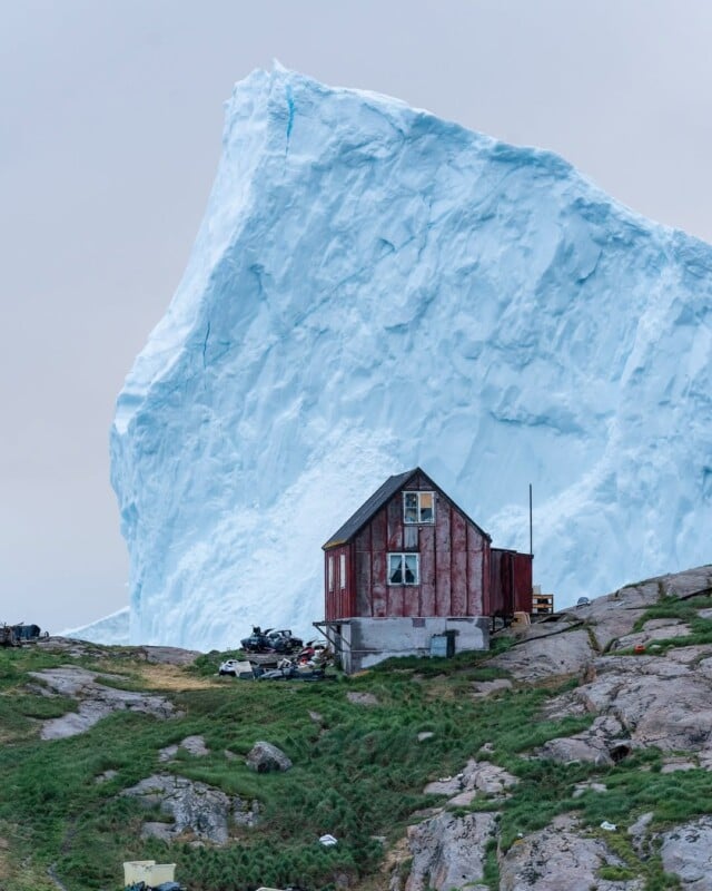 Когда удаленное поселение в Гренландии проснулось одной ночью, жителям открылась завораживающая картина: два гигантских айсберга возвышались над ними. Один из местных жителей, Деннис Лехтонен, не раздумывая схватил свои камеры и начал фотографировать это необычное событие.