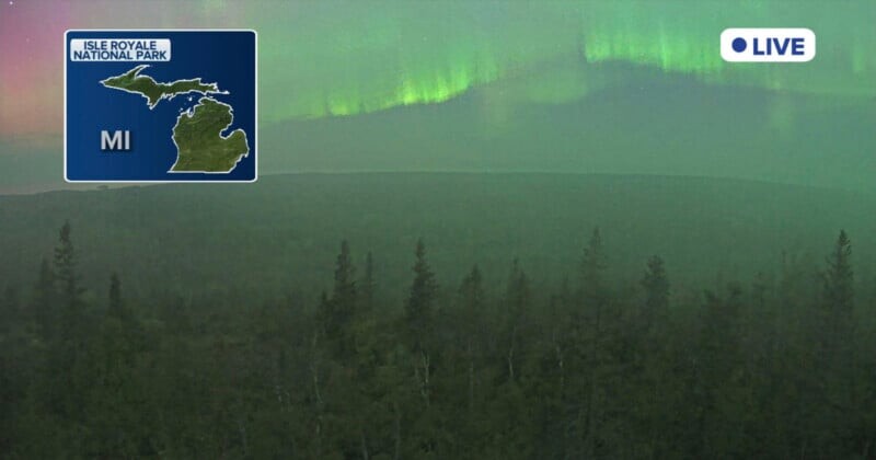 Внутренние веб-камеры в Национальном парке Исле Ройал, штат Мичиган, запечатлели потрясающее зрелище танцующих огней северного сияния. Один из пользователей в социальных сетях описал это как "наилучшее изображение, когда-либо снятое камерой Национального парка".