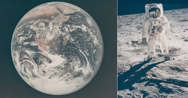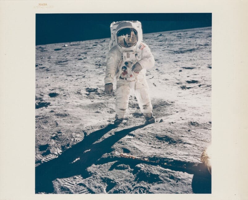 В коллекции также есть исторически значимые фотографии, такие как первая полная фотография Земли, сделанная во время Apollo 17, и знаменитый портрет Базза Олдрина “Человек на Луне”.