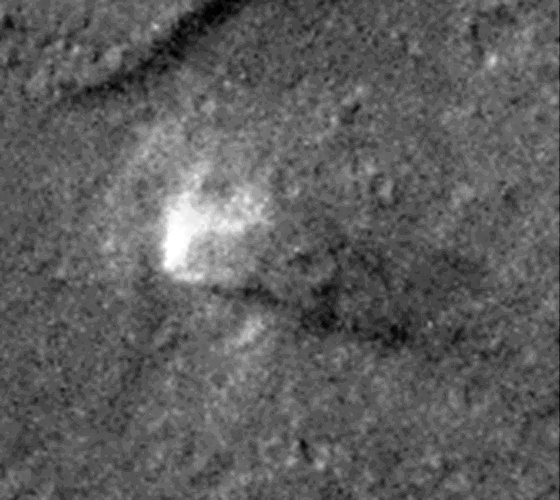 Находясь на расстоянии примерно 0,6 миль (1 километр) от места столкновения, марсоход зафиксировал крупный пылевой вихрь диаметром около 65 метров, который захватывает более мелкий вихрь, движущийся позади. Эти закрученные столбы воздуха, известные как пылевые вихри, являются распространенным, но хаотичным явлением на Марсе.