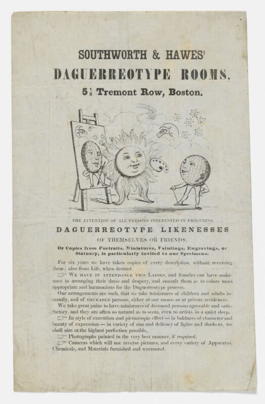 Выставка Национальной портретной галереи, «От тени к веществу: Портреты большого формата в formative годы фотографии», черпает из своей богатой коллекции ранней фотографии и иллюстрирует эту увлекательную эволюцию. Список включает дагеротипы сенаторов США Даниэля Уэбстера и Джона К. Калхуна, амбротипный портрет американского ландшафтного художника Джона Фредерика Кенсета и тинтипный образ неопознанной афроамериканской женщины.