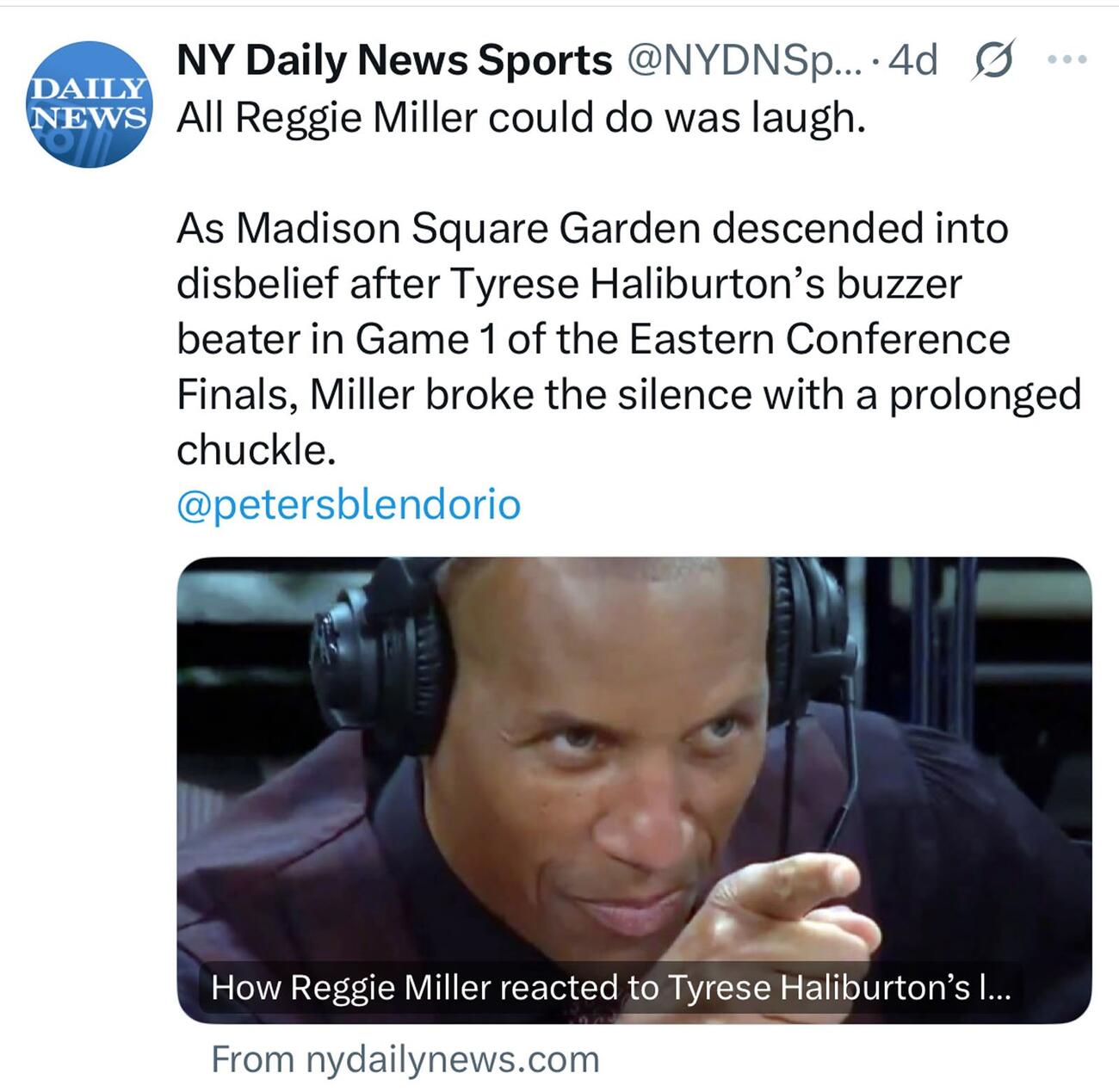 Празднование было преждевременным: его бросок из-за трехочковой линии стал лишь равным счетом, и в итоге Пэкерс выиграли 138-135 в овертайме. Сидящий на трибунах Реджии Миллер, тоже ставший частью этой истории, улыбался и указывал на Халибуртона.