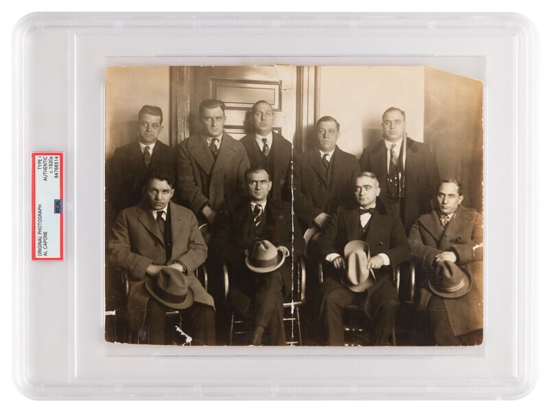 Подписанная фотография показывает Капоне, сидящего в роскошном кресле. На нем можно увидеть текстурированное изображение с личной надписью карандашом: «Моему другу Джо Куку, Аль Капоне». Такой товар — настоящая находка для коллекционеров, поскольку автограф Капоне встречается крайне редко, особенно в форме фотографий.