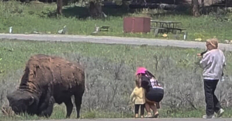 В определенный момент туристы с маленькими детьми, не обращая внимание на возгласы других посетителей, сблизились с бизоном весом около 900 кг. Когда Гундерсон заметила, что один из детей отпустил руку матери и направился к бизону, она начала снимать на видео, понимая, что это может быть опасно.