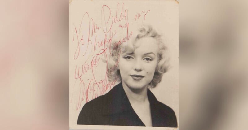 Фотография была продана на аукционе RR Auction в Бостоне за 21,655 долларов. Эта редкая фотография размером всего 2,25 x 2,75 дюйма содержит надпись красным чернилами: "Г-ну Болдсу, спасибо и мои самые теплые пожелания, Мэрилин Монро ДиМаджо".