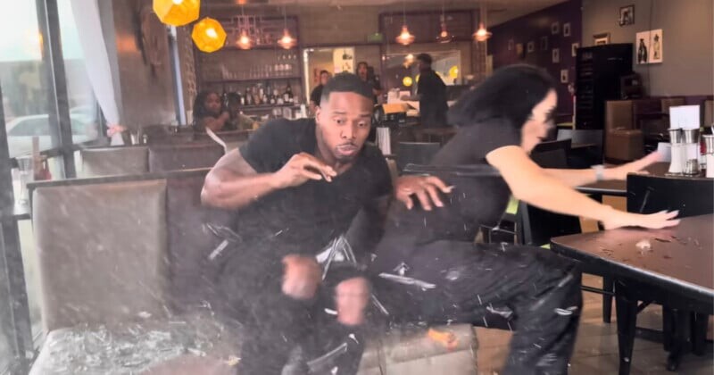 Как видно на записи из их видео, в тот момент, когда пара взяла первый укус слайдера, SUV с огромной силой влетел в стену ресторана рядом с ними. Стекло разбилось, и часть его ударила Блэквуда по лицу, что заставило обоих быстро встать, чтобы спастись от удара.