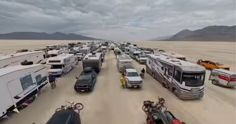 На фестивале Burning Man происходят не только творческие выставки, но и грандиозные ожидания. В этом году фотограф Стивен Донован стал свидетелем невероятной 20-часовой очереди на вход на фестиваль, запечатлев ее с необычного ракурса.