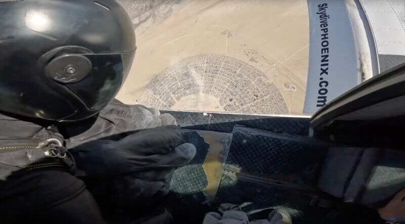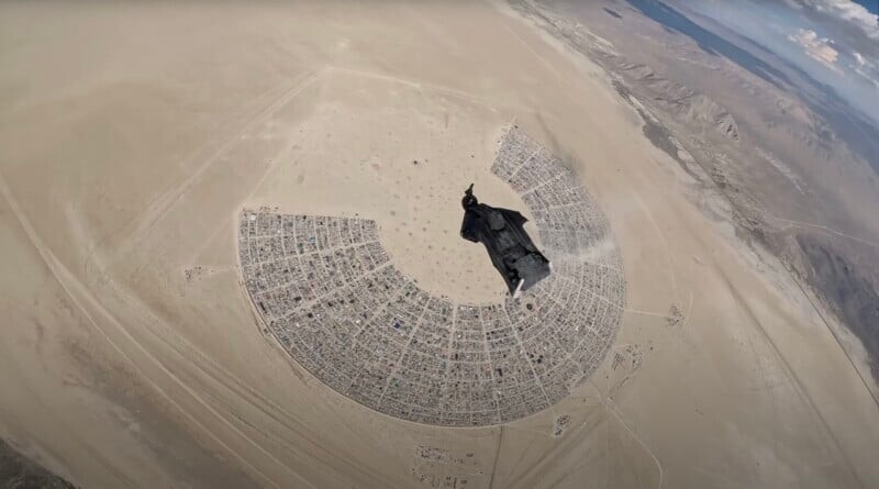 Пилот в крылатых костюмах представил захватывающее видео, снятое во время прыжка над знаменитым фестивалем Burning Man в невадинской пустыне. Этот зрелищный момент был запечатлен с высоты птичьего полета.
