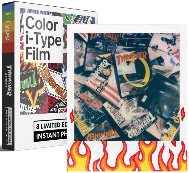 Дополняя камеру, представлена пленка Polaroid Color i-Type – Thrasher Edition, с 11 уникальными дизайнами рамок, созданными известным художником Neckface. Его смелый и хаотичный стиль отражает остроту и юмор скейтбординга. Цены на пленку составляют $21 США (или эквивалент в других валютах) за упаковку, и она совместима с камерами Polaroid Flip, Now, Now+, I-2, Lab и другими i-Type.