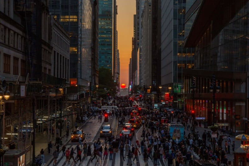 Как показал фотограф Кин Куан в недавнем видео на YouTube, во время редкого события Манхэттенхендж в 2025 году на улицах было невероятно многолюдно. Чтобы занять хорошее место, людям приходилось приходить очень рано.