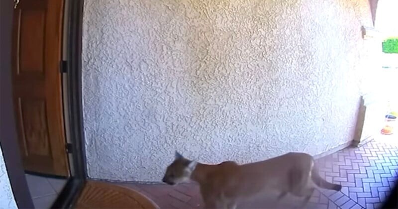 Камера у двери запечатлела горную львицу, гуляющую по дому в Калифорнии