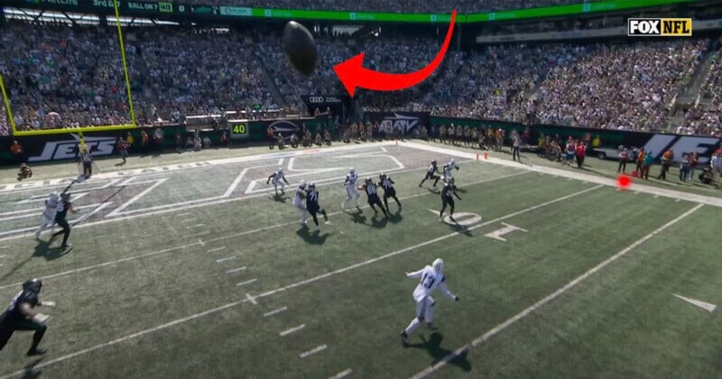 В матче между Нью-Йорк Джетс и Даллас Ковбойс квотербек Джетс Джастин Филдс попытался сделать передачу бегущему Брису Холу. Однако мяч ударился в защитника Ковбойс Дэна Фаулера-младшего и отскочил в воздухе, в результате чего столкнулся с камерой Fox SkyCam.