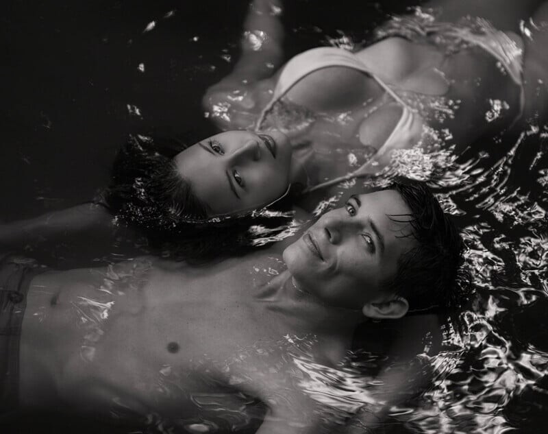 Гаксон Уилер из Шривпорта, Луизиана, выиграл в категории Портрет за интимный черно-белый портрет двух людей, плавающих в воде. Это удачное использование парного объектива Tamron 35-150mm f/2-2.8 Di III VXD.