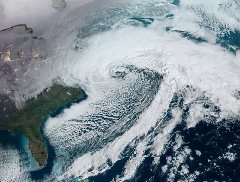 На этой неделе Северо-восток США подвергся исторически мощному зимнему шторму, известному как нор’easter, вызвавшему массовые перебои в электроснабжении и охватившему почти 60 миллионов американцев предупреждениями о зимних штормах. Ситуация на земле выглядит тревожно, но космические снимки NASA и NOAA демонстрируют невероятные масштабы этого явления.