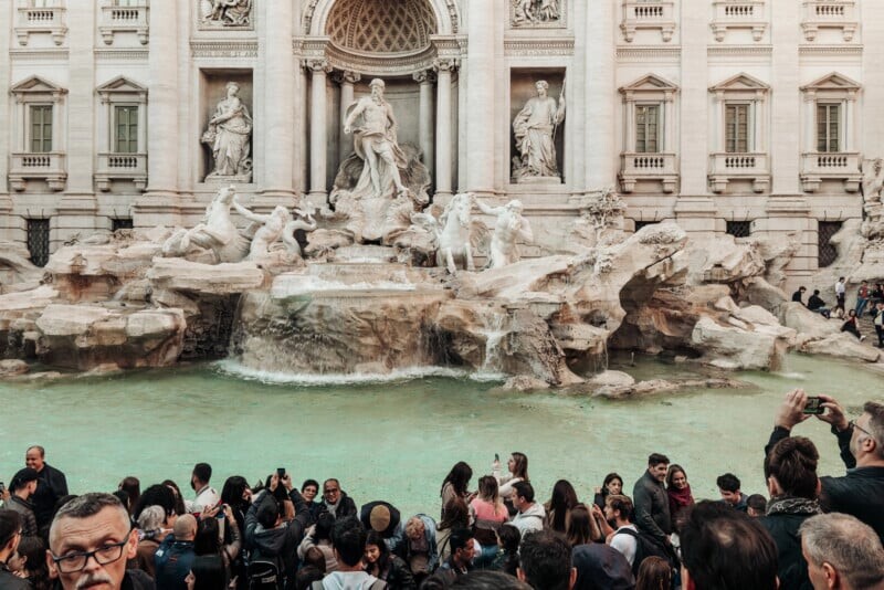 Фонтан Треви, спроектированный архитектором Никола Сальви в XVIII веке, остаётся доступным для наблюдения с окружающих площадок, но возможность находиться на краю и делать детальные фотографии теперь ограничена для обладателей билетов.