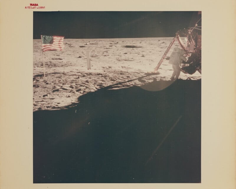 «Эта рамка не была выбрана для общего тиража офисом по связям с общественностью NASA в 1969 году, поэтому она оставалась в значительной степени неопубликованной и незамеченной десятилетиями», — отмечает RR Auctions. «Очень немногие винтажные фотографии с красным номером сохранились, что делает это изображение не только одним из самых значимых в истории программы Apollo, но и одним из самых редких».