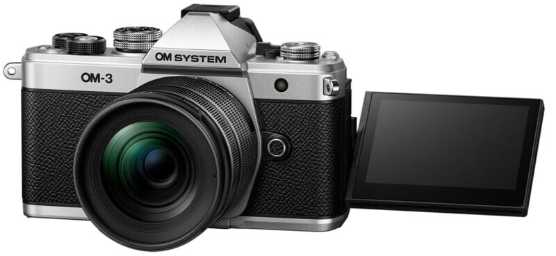 OM System OM-3 удивляет своей ретро эстетикой, напоминая о классическом Olympus OM-1, выпущенном в 1970-х годах, но здесь безусловно видна передовая технология. Камера оборудована 3-дюймовым изменяющим углом дисплеем и цифровым сенсором изображения, что придаёт ей современный вид.