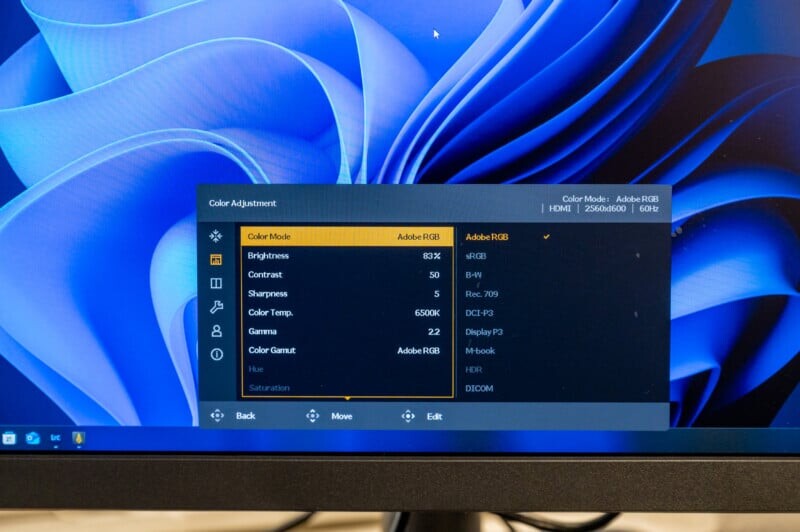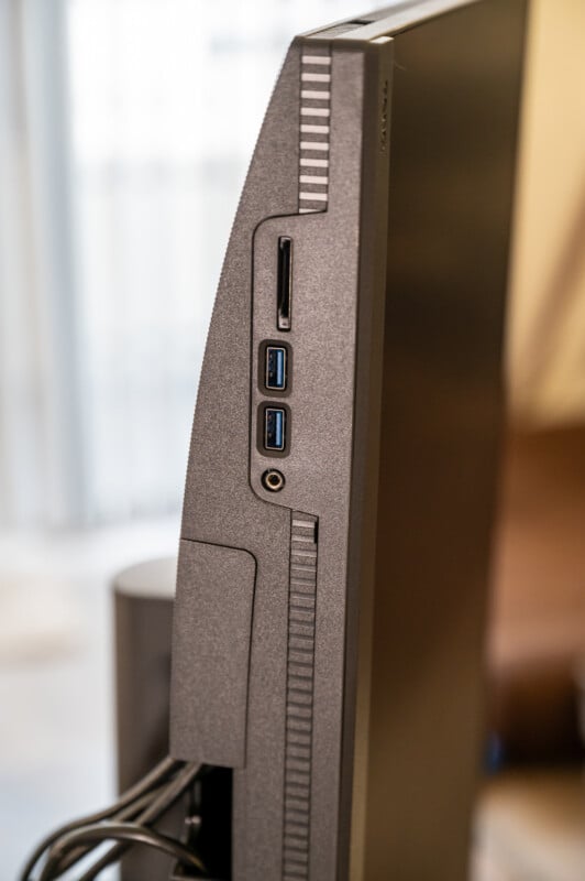 Из коробки вы получаете все необходимые кабели, включая HDMI, DisplayPort и USB-C, а также настраиваемую подставку с возможностью регулировки высоты, наклона и поворота. Данный монитор также поддерживает HDR10, отличается яркостью до 400 нит и предустановленной калибровкой, что обеспечивает хорошие показатели цветопередачи — 100% sRGB и 98% Adobe RGB.
