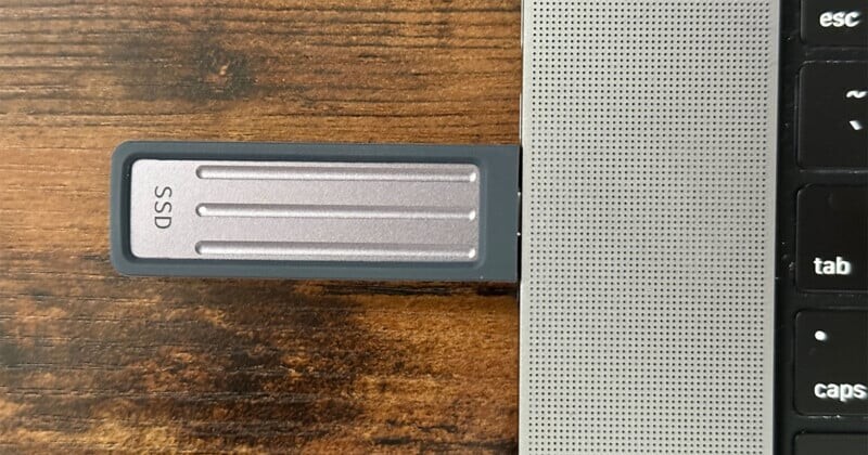 Размеры нового SSD действительно компактные: всего 70 мм в длину и чуть более 20 мм в ширину. Вес составляет всего 24 грамма, что делает его идеальным спутником для фотографов, работающих на выезде. Несмотря на свои небольшие размеры, устройство обладает довольно хорошей прочностью. Оно имеет защиту IP54 от пыли и влаги, а также поставляется с резиновым чехлом для дополнительной защиты, что особенно важно для использования в полевых условиях.