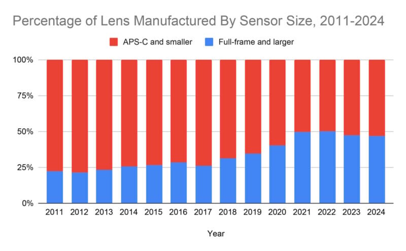 Также стоит отметить, что данные CIPA не указывают конкретные компании, производящие объективы. Например, хотя Canon и Nikon ранее доминировали на рынке APS-C, их доля снижается, что подчеркивает общее сокращение интереса к этому сегменту.