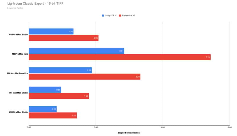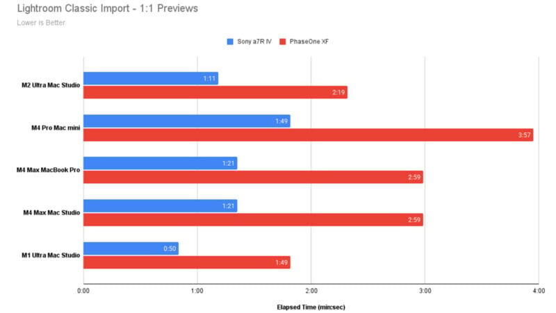 В своей работе настройка M4 Max показывает значительно более высокую производительность по сравнению с предыдущими моделями. При абсолютно той же конфигурации — 128 ГБ оперативной памяти — новый Mac Studio демонстрирует лучшие результаты в реальных сценариях редактирования фотографий. Чаще всего при работе с Lightroom M4 Max показывает замечательные результаты в сравнении с M2 Ultra: время экспорта фотографий значительно сокращается, что особенно ценят фотографы.