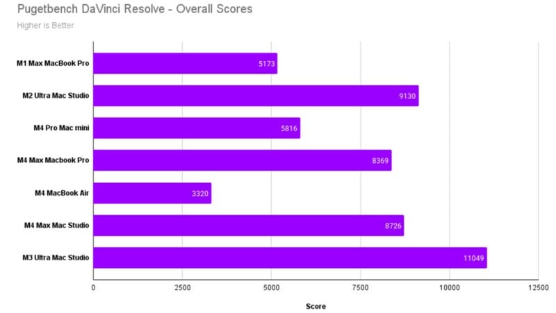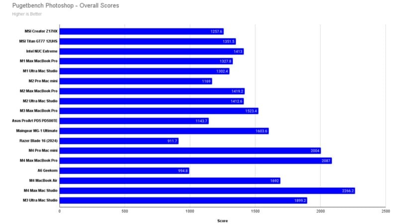Интересно, что в Photoshop M4 Max также на высоте. Несмотря на то, что новинка еще недостаточно оптимизирована к требованиям Adobe, текущие результаты показывают, что данный компьютер обеспечивает отличное быстродействие.