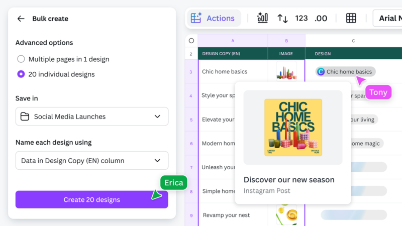 В дополнение, Canva предлагает Sheets – новый подход к таблицам, который облегчает работу с данными, используя визуальные и интуитивные функции. Magic Studio в рамках Visual Suite 2.0 позволяет быстро и без усилий создавать персонализированный контент для многорыночных кампаний.