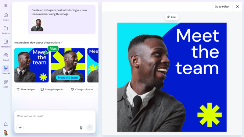 Также новая версия предлагает функции Magic Charts, которые позволяют пользователям преобразовывать сырые данные в динамические визуализации, независимо от уровня навыков. Canva AI представляет собой голосового помощника, который помогает превратить идеи в реализацию за считанные секунды.