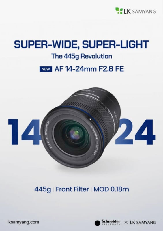 Компания Samyang представила новый объектив AF 14-24mm f/2.8 FE, созданный в партнерстве с известной оптической компанией Schneider-Kreuznach. Этот компактный и легкий сверхширокоугольный зум-объектив обещает отличную производительность и расширенные возможности для фотографов. Объектив успешно сочетает в себе технологии обоих брендов, что делает его выдающимся продуктом на рынке беззеркальных камер.