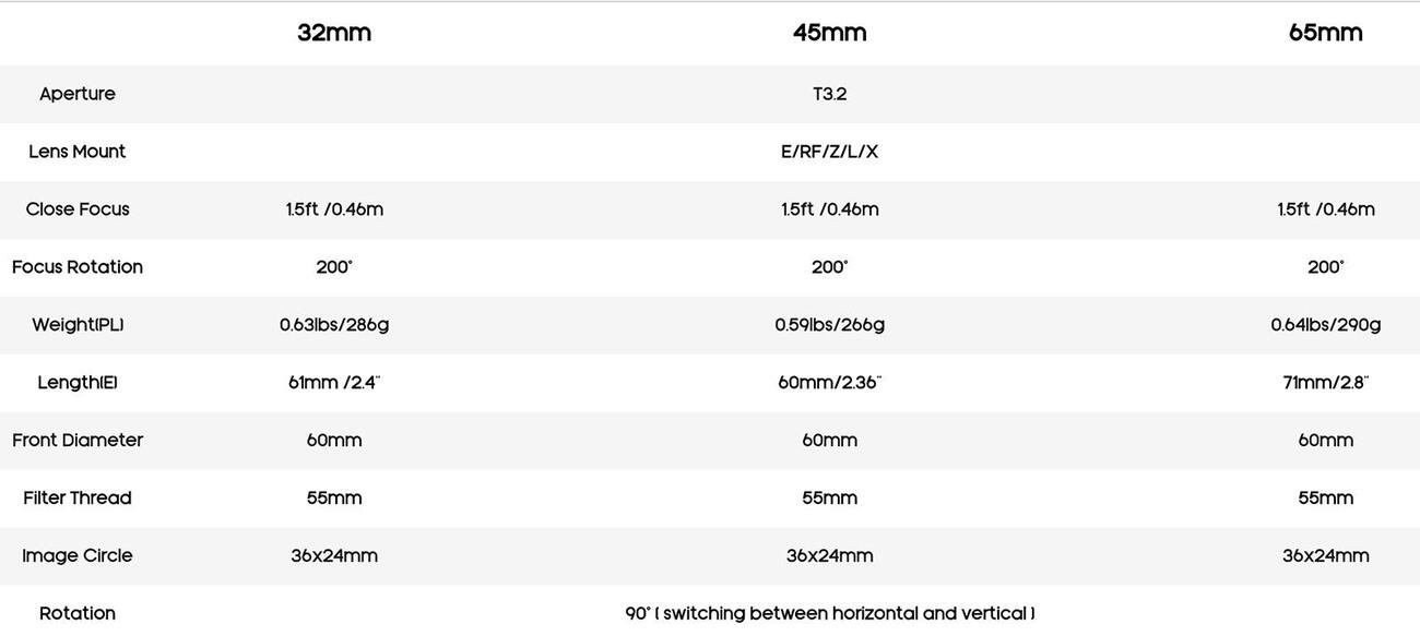 Первый объектив в линейке — 45мм T3.2, полностью ручной и разработан как для фотографии, так и для видеосъемки. Важной особенностью является кнопка, расположенная рядом с байонетом, которая разблокирует часть объектива, позволяя пользователю вращать корпус.