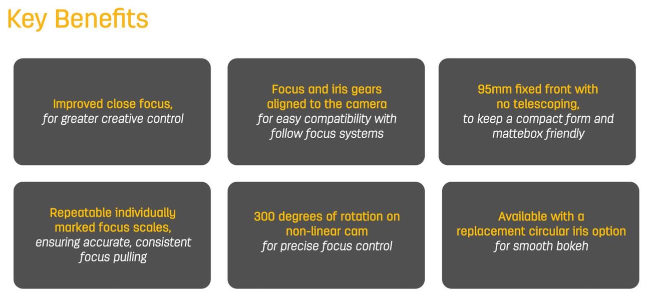 С набором из 10 фокусных расстояний от 16 мм до 135 мм, все линзы тщательно откалиброваны по цвету и характеру. Они предлагают мягкий контраст, теплую цветопередачу и предрасположенность к флейрам, что может быть полезно в некоторых кинематографических приложениях. Каждый объектив имеет одинаковую диафрагму T2.1 и компактный корпус, вес которого варьируется от 0.7 до 1.3 кг.