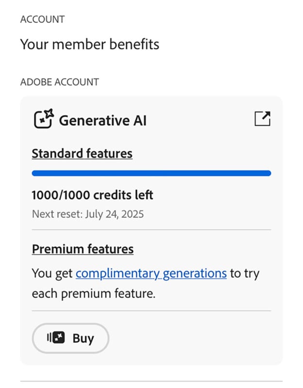 Каждый экземпляр использования стандартной генеративной функции уменьшает один кредит, а премиум-функции требуют большего количества в зависимости от крайне сложных операций, таких как создание видео.