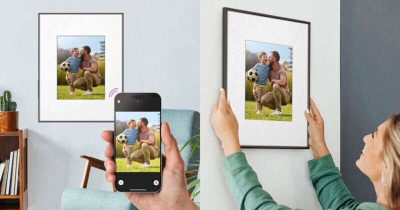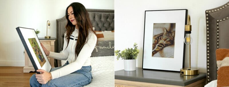 Данная рамка может быть установлена вертикально или горизонтально, и предлагает возможность смены черных и белых матов. Обещано, что она сможет показывать фотографии до двух лет без подзарядки. В случае необходимости зарядки пользователи просто подключают рамку через USB-C.