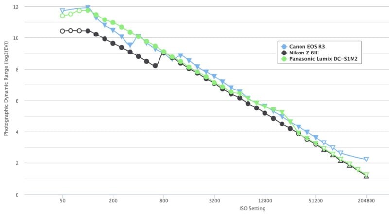 По последним тестам, проводимым Биллом Клаффом, Lumix S1 II занимает второе место по пиковой динамике среди 24-мегапиксельных камер. С показателем динамического диапазона 11.75, она немного уступает только Canon EOS R3 с 11.91, а также обходит некоторые среднеформатные камеры.