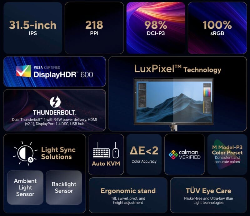 Кроме того, монитор предлагает несколько интеграционных функций для пользователей Mac, включая управление яркостью MacBook, виджет управления дисплеем для macOS и порты Thunderbolt 4. Хотя он также полностью совместим с Windows, Asus уделила особое внимание тому, чтобы новый дисплей оптимально работал для профессионалов на Apple.