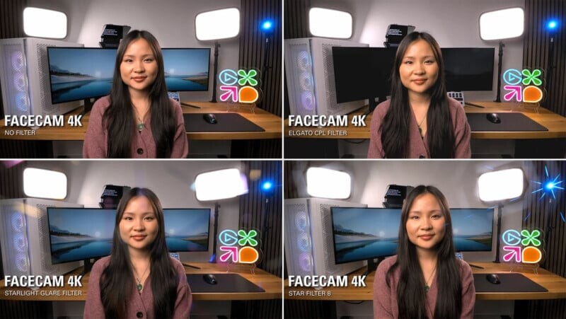 Новая веб-камера Elgato Facecam 4K стала доступна за 199 долларов и предлагает поддержку стандартных 49-мм фильтров, что дает пользователям возможность применять такие эффекты, как уменьшение бликов с помощью поляризационного фильтра или создание облесков с помощью рассеивателя. Как утверждает Elgato, _"Фильтры, раньше доступные только для профессиональных камер, теперь легко доступны для вашей веб-камеры"_.