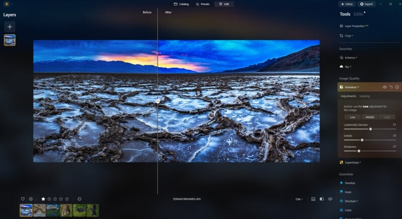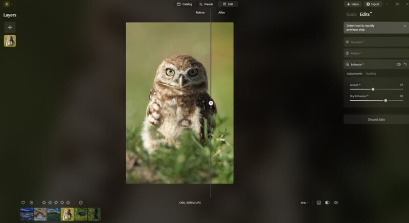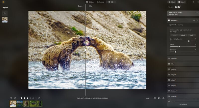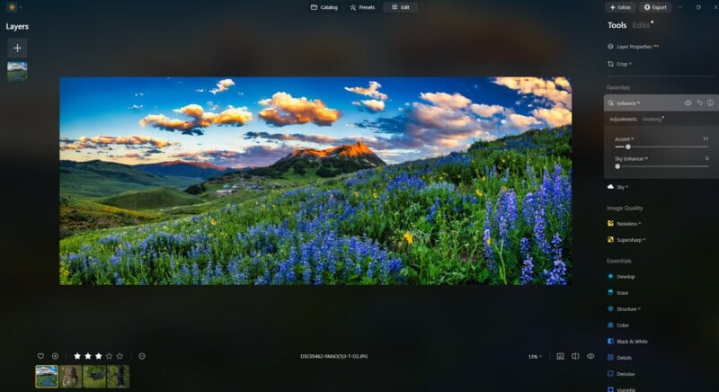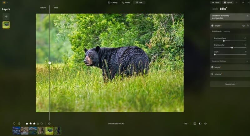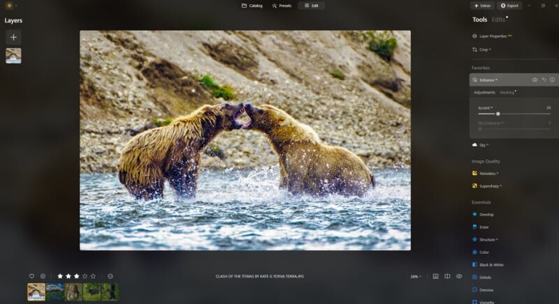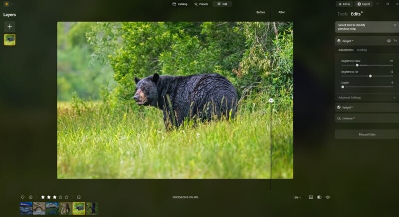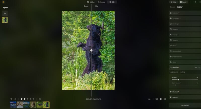 Функция Enhance, позволяющая улучшать изображения одним щелчком, идеально подходит для тех, кто хочет быстро получить качественные результаты, не углубляясь в детали. Для более опытных фотографов это также отличная отправная точка для дальнейшей доработки.