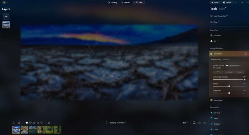 Одним из основных достоинств Luminar Neo является интуитивно понятный интерфейс, который упрощает поиск необходимых инструментов и функций. Программа предлагает как независимые возможности, так и интеграцию с другими популярными программами, такими как Lightroom и Photoshop. Будь то массовая обработка фотографий или тонкая настройка одного кадра, Luminar Neo обеспечивает безупречную производительность благодаря своему мощному движку ИИ.